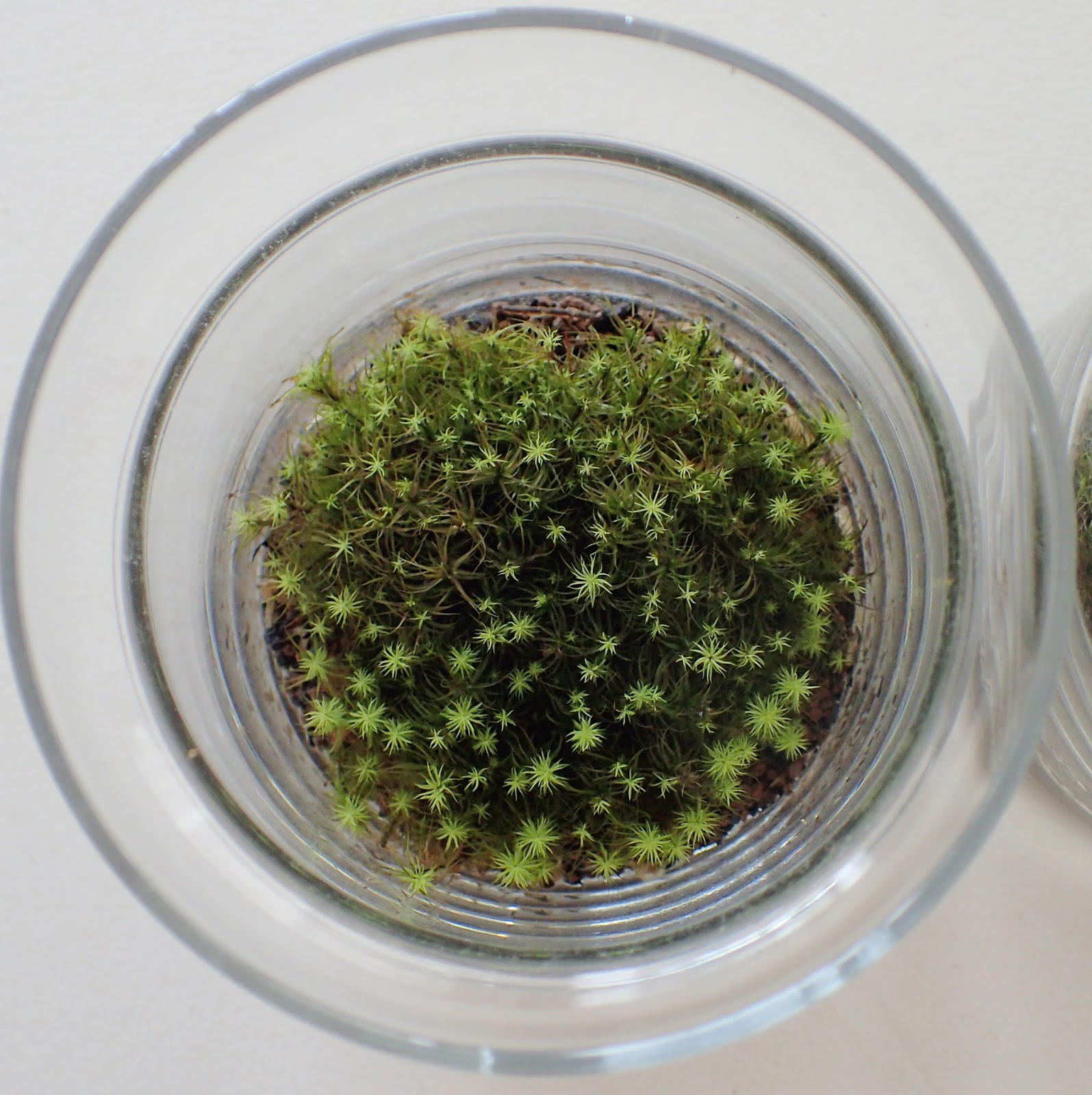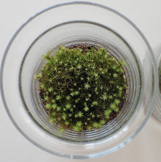少し乾いてきたかなと思ってから、軽くコケの表面を湿らせるイメージで霧吹きをかけましょう。※テラリウムの中でも、本当に乾いたときには、コケの先端が、チリチリと丸まってきます。