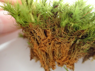 タマゴケは塊りをほぐすと、断面がこんな感じ